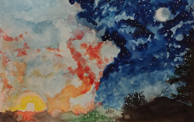 | 4"x6" watercolor painting of yesterday's bright sunny afternoon sky |